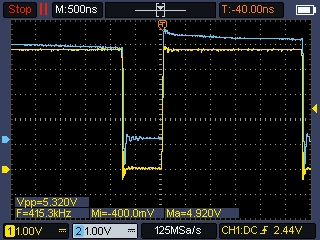 Die Suche geht weiter und ich kaufe mir ein 4-Kanal Oszilloskop, da es die Auswertung der Signale einfacher macht. So kann ich z.B. das Enable Signal, zwei Eingänge und den dazugehörigen Ausgang gemainsam messen. Der Logicanalyzer macht hier leider noch keinen Sinn.