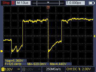 Clock an CPU-Pin 19 hat Sägezahn und muss genauer analysiert werden, ob dies in Ordnung ist. Test des Signals ohne CPU durchführen.