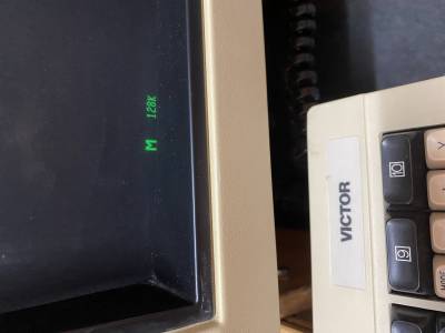 Der Monitor zeigt „M 128K“ an. Super! Der Speichertest funktioniert und auch die Monitoranzeige. Mit angeschlossenen Diskettenlaufwerken wird auch das Disketten-Symbol angezeigt und der Rechner möchte von Diskette booten, sofern ich eine Boot-Diskette hätte.